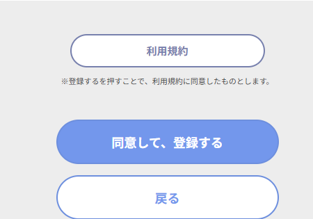 9.確認画面が表示されますので、内容を確認、利用規約を確認いただき、「同意して、登録する」をクリック