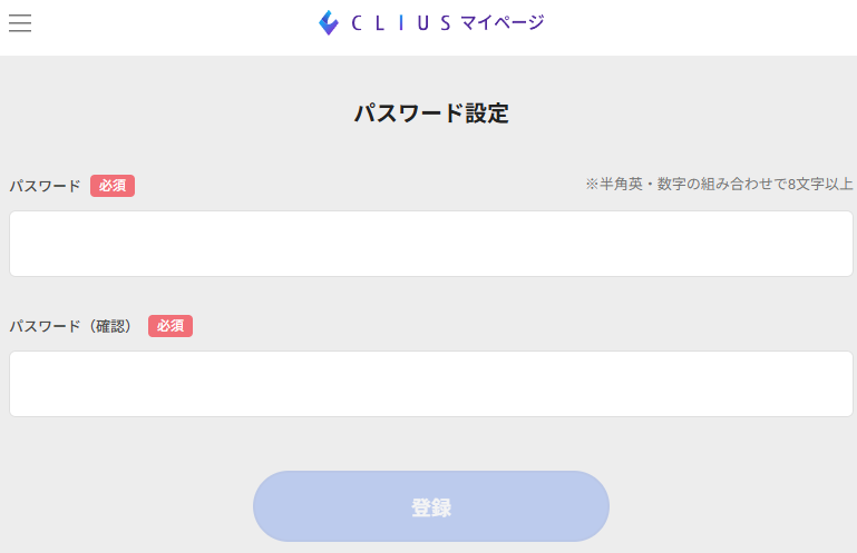 6.パスワード設定画面で、パスワードを決めていただき、「入力」→「登録」(設定したパスワードは、忘れないように記録しておいてください)パスワードは、半角英・数字の組み合わせで8文字以上